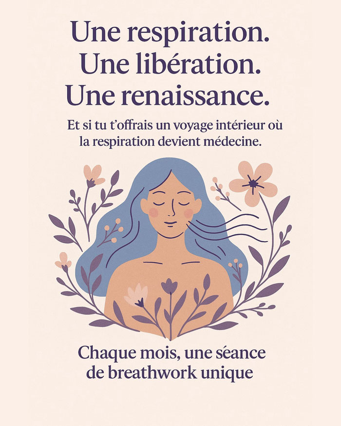 Le breathwork est une pratique puissante de respiration consciente et connectée, un voyage intérieur qui t’invite à libérer les blocages, les émotions retenues et à te reconnecter à ton essence profonde.